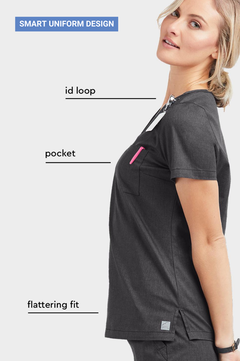 Fabric blends with spandex or knit allow for more range of motion, helping reduce body friction and fatigue for more comfort on the longest days. We break down the most popular fabrics used to make scrubs here.