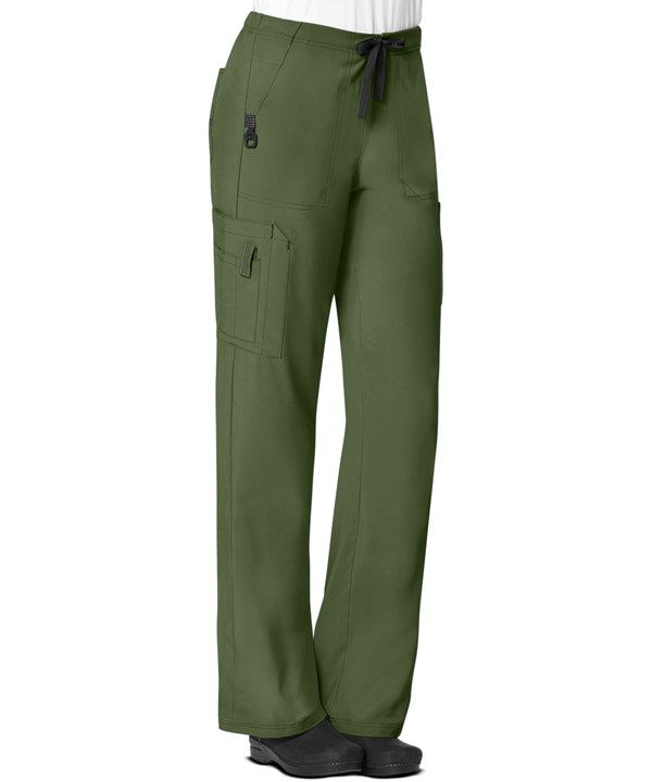 Product Details For the ultimate experience in function and flexibility, the Carhartt Force ® C52110P women's petite cargo scrub pants sit slightly below the natural waistline and feature a drawstring front with a half elastic back. With a total of seven pockets, you'll never need to worry about storage again! You will find two front pockets, an additional interior pocket, a divided cargo pocket, two back pockets, and an EMT-inspired cargo pocket with three accessory compartments with Velcro closure for your scissors and pen slot. Featuring FastDry® technology that wicks away sweat and Stain Breaker® technology that releases stains with ease, you can keep your focus on the tasks at hand. Contrasting bar tacking, logo D-ring, logo drawstring, and stitching on the back pockets add details to these stylish pants. Rugged Flex® stretch fabric is 94/6 polyester/spandex stretch dobby. The approx. inseam for a size medium is 27.5".