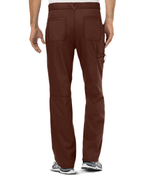 Product Details The Cherokee Workwear Revolution WW140S Men's Cargo Scrub Pants feature a functional zipper fly, drawstring, button closures, functional belt loops, and back elastic. There are 7 pockets for your convenience: 2 front slash pockets with 1 inner pocket, 1 cargo pocket, 1 outer divided pocket with snap closure, and 2 back pockets. There is an ID bungee loop on the left slash pocket with the Cherokee Revolution logo tape detail. The seaming details and tapered legs help to complete the look. The fabric content is 78/20/2 poly/rayon/spandex twill.