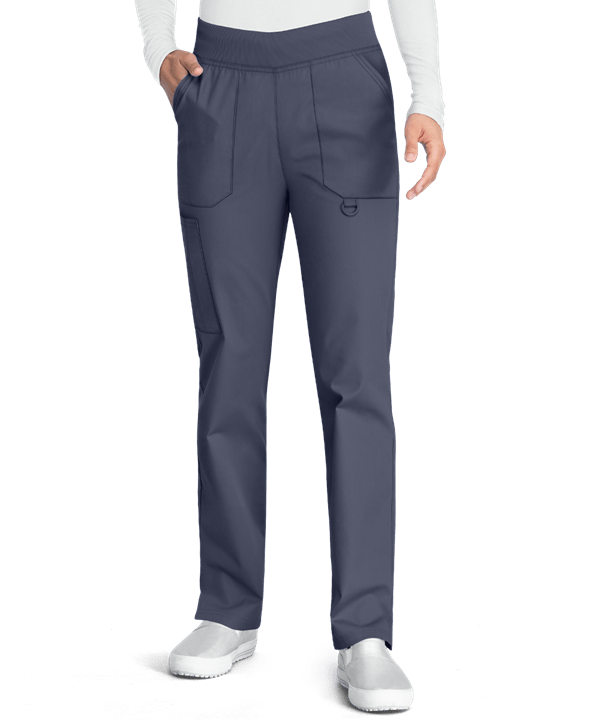 Product Details The Dickies EDS Signature Scrubs DK125P Women's Mid Rise Straight Leg Pull On Cargo Petite Scrub Pants features a contemporary fit, tapered leg, rib knit elastic waistband with interior drawstring, D-ring on left front pocket with side vents. For storage it has 5 pockets; 2 front and 2 back patch pockets and a cargo pocket with pen slot. Fabric content is 55/45 cotton/poly, rib knit is 96/4 poly/spandex.