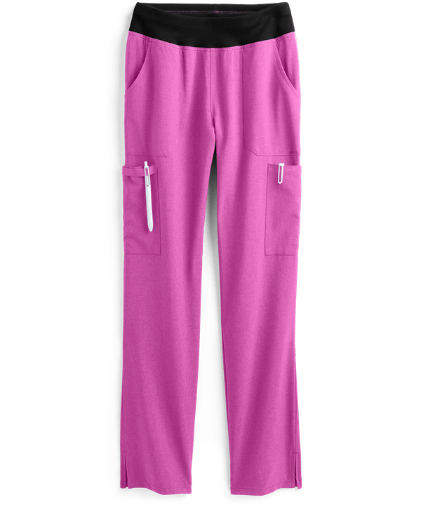 Product Details The Dickies EDS Essentials DK005P Elastic Waist Petite Cargo Scrub Pants feature natural rise, tapered legs, and a stretch knit waistband. For storage, these cargo scrub pants include 7 pockets: 2 front slash pockets, 1 cargo pocket on the right with twill tape utility loops, 1 cargo pocket on the left with 1 inner pocket, and 2 back pockets. The ankle vents ensure ease of mobility. The fabric content is 95/5 poly/spandex poplin.