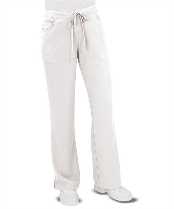 Product Details The Grey's Anatomy 4232P contemporary style pants make flexibility and comfort a priority, with their drawstring closure and elastic back. For optimal storage, you'll find 5 pockets: 2 back pockets, 2 front pockets, and 1 coin pocket. These modern fit pants sit at the waist and feature a slight flare leg with ankle slits. There is a tagless inside label and a woven label on the back pocket. Barco arclux™ 77/23 poly/rayon fabric features moisture wicking with soil release. Grey's Anatomy © ABC Studios. All Rights Reserved.