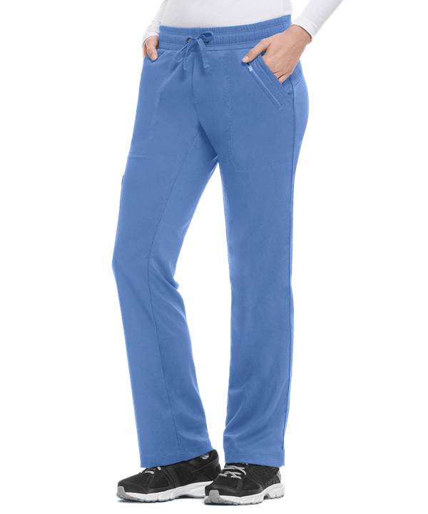 Product Details The Healing Hands 9139P Purple Label Women's PETITE Tanya Drawstring Scrub Pants feature a mid-rise with straight legs and a fully elasticized comfort stretch waistband. For optimal storage, these scrub pants include 5 pockets: 2 front slash pockets, 1 outer pocket with zipper closure, 1 cargo pocket, and 1 back pocket. For added style and flexibility, they also feature piping detail along side seams and a back curved yoke with ankle vents. The fabric content is 77/20/3 poly/rayon/spandex.