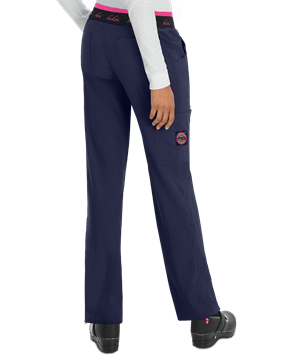Product Details The koi Lite™ Scrubs Women's Petite Spirit Elastic Waist Slim Fit Scrub Pants is a natural rise, boot cut leg pant. These pants include an adjustable bungee cord at the hem, with inside button to secure cord. Double elastic waistband with Koi logo the bottom band. Contrast hidden keychain bungee with clip on the left front pocket. 5 pockets; 2 large front pockets, 1 cargo pocket with a Koi patch logo on the right leg and 2 back pockets for storage. Moisture wicking and wrinkle free. Performance stretch. Fabric content is 100% polyester dobby stretch, rib knit trim is 92/8 poly/spandex.